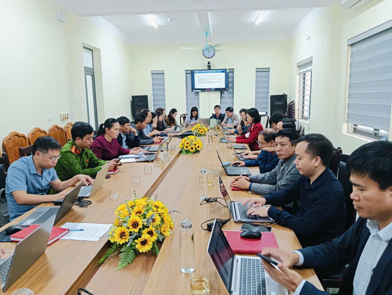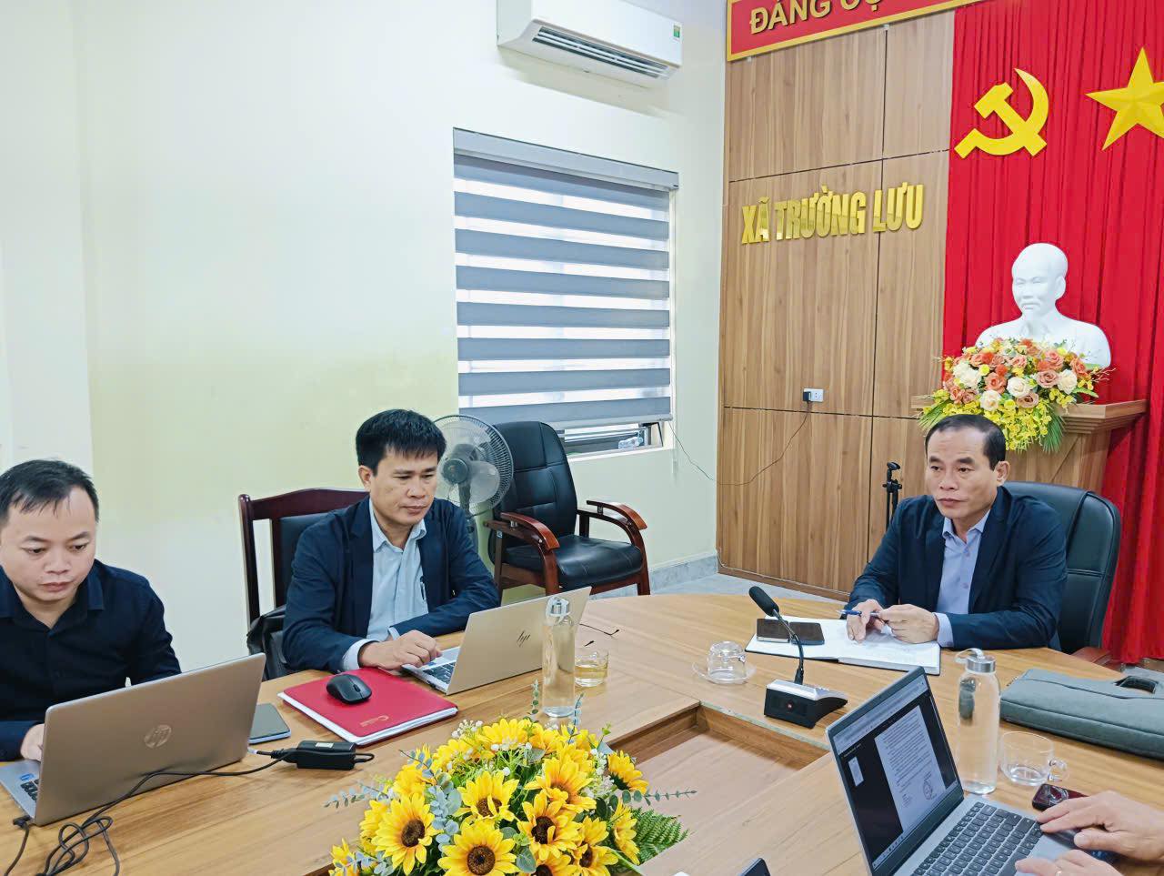 Hội nghị diễn ra tại phòng họp trực tuyến UBND xã Trường Lưu.