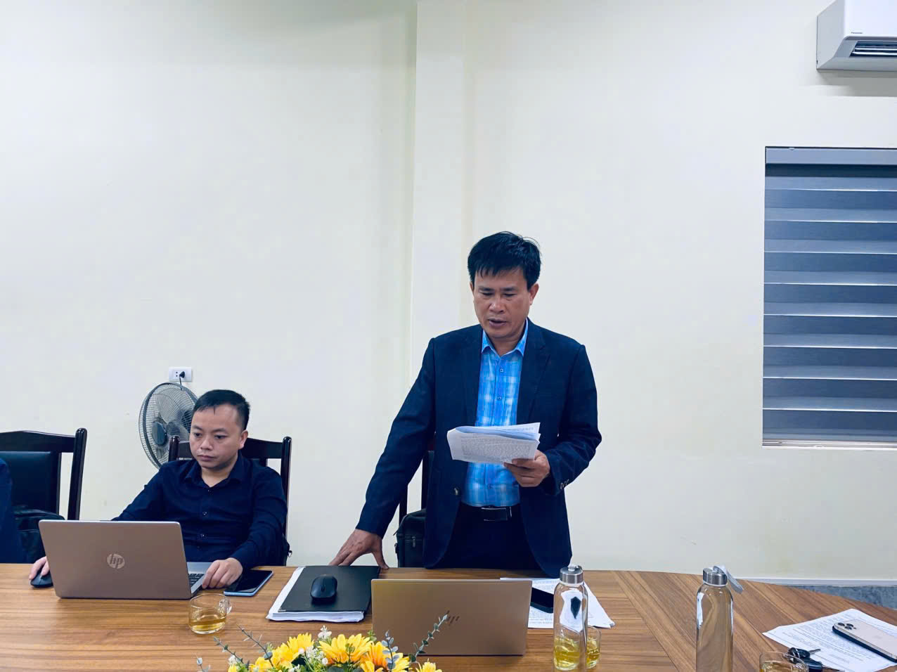 Đồng chí Nguyễn Tiến Dũng – Bí thư Đảng ủy, CT HĐND xã chủ trì cuộc họp