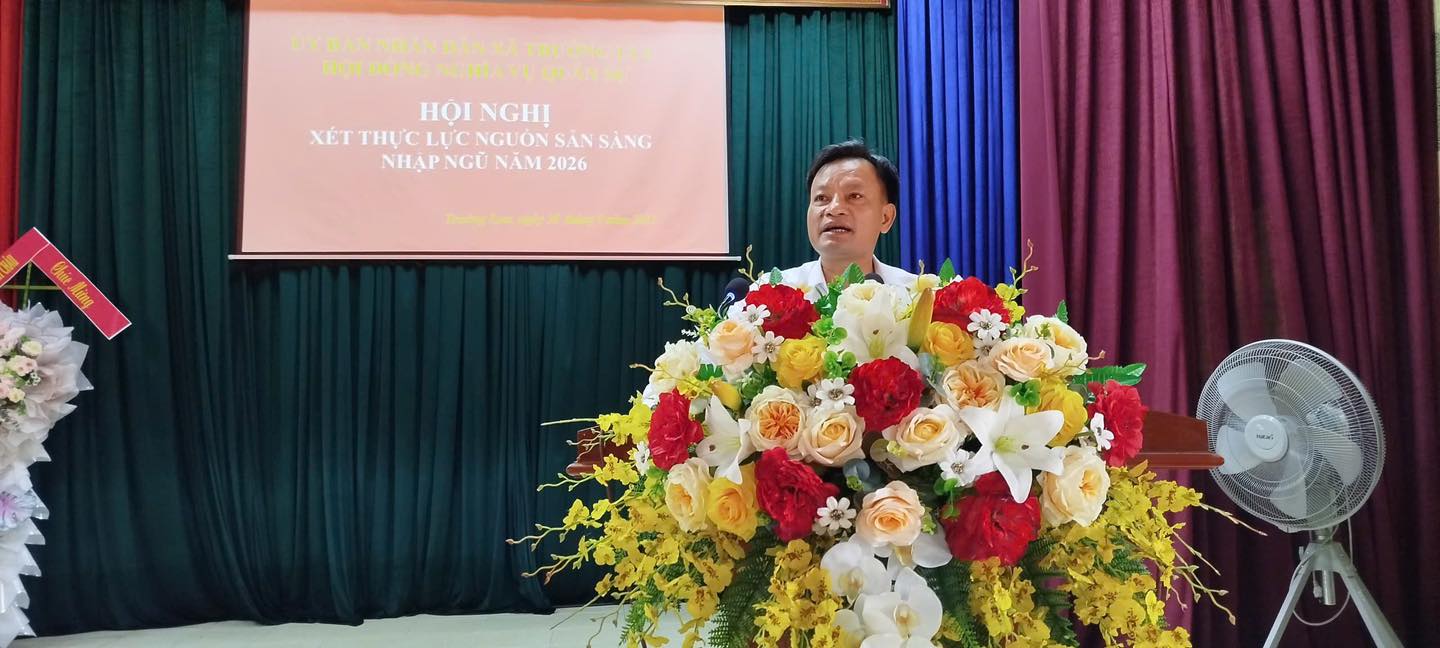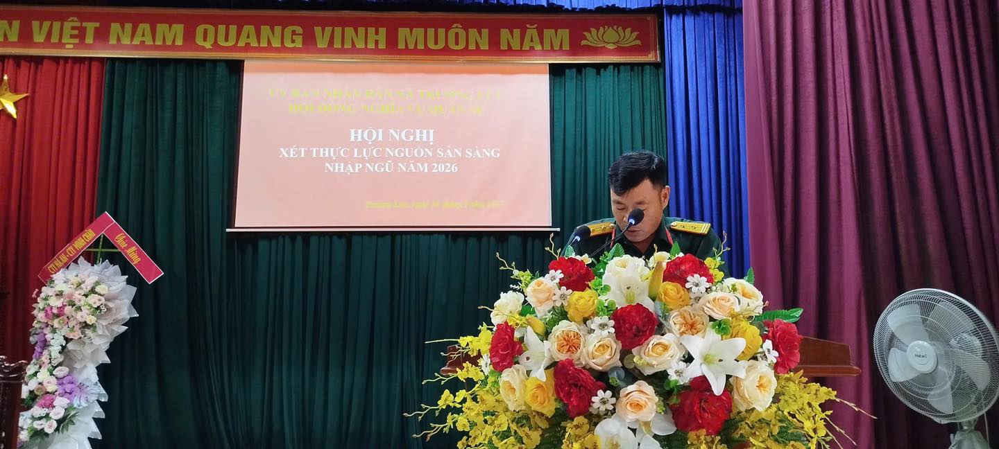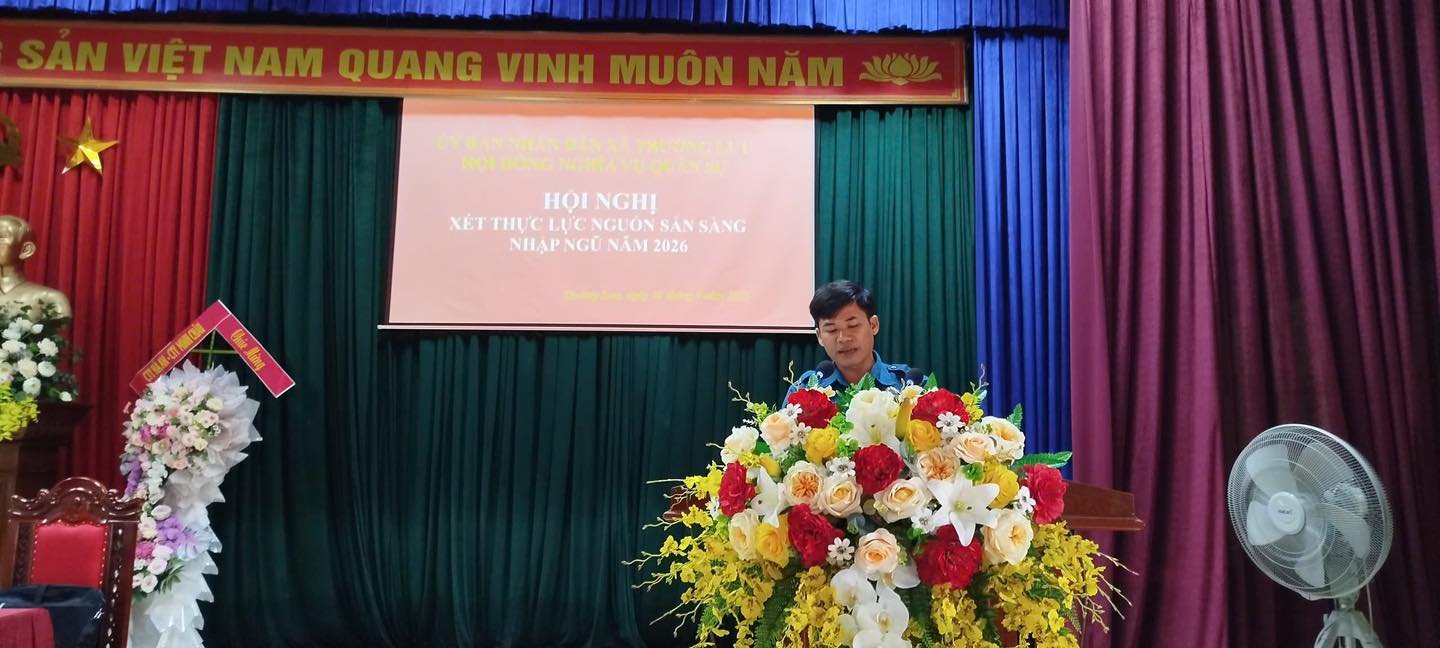 Thực hiện Hướng dẫn số 3018/HD-BCH ngày 05/9/2025 của Bộ Chỉ huy Quân sự tỉnh Hà Tĩnh về việc tuyển chọn và gọi công dân nhập ngũ năm 2026, ngày 30/9/2025, tại Hội trường lớn UBND xã, Hội đồng Nghĩa vụ quân sự xã Trường Lưu đã tổ chức Hội nghị xét duyệt thực lực nguồn sẵn sàng nhập ngũ năm 2026.
