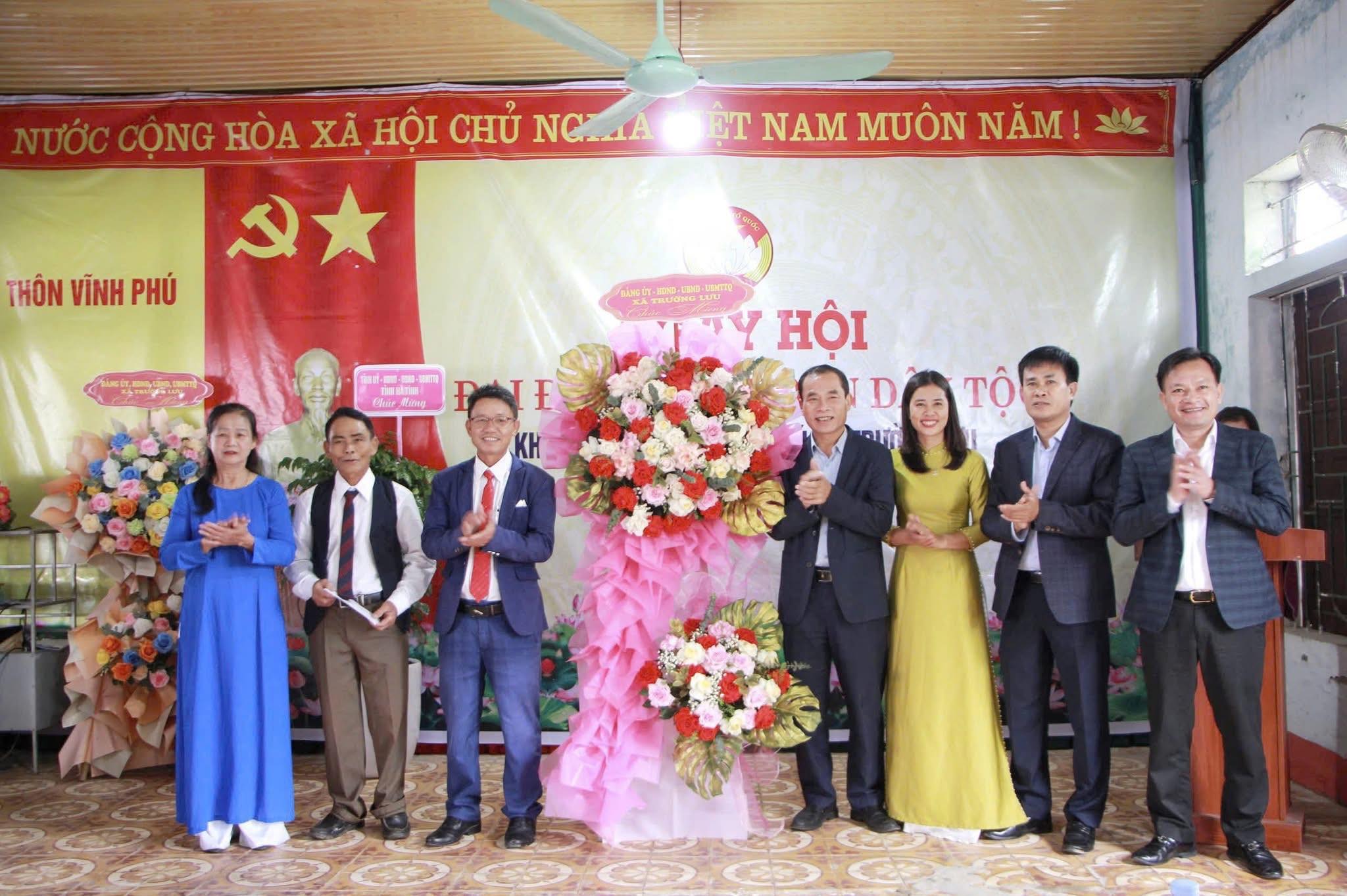 Lãnh đạo xã tặng hoa chúc mừng