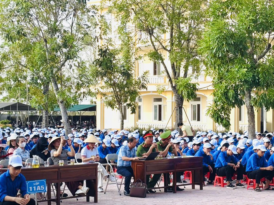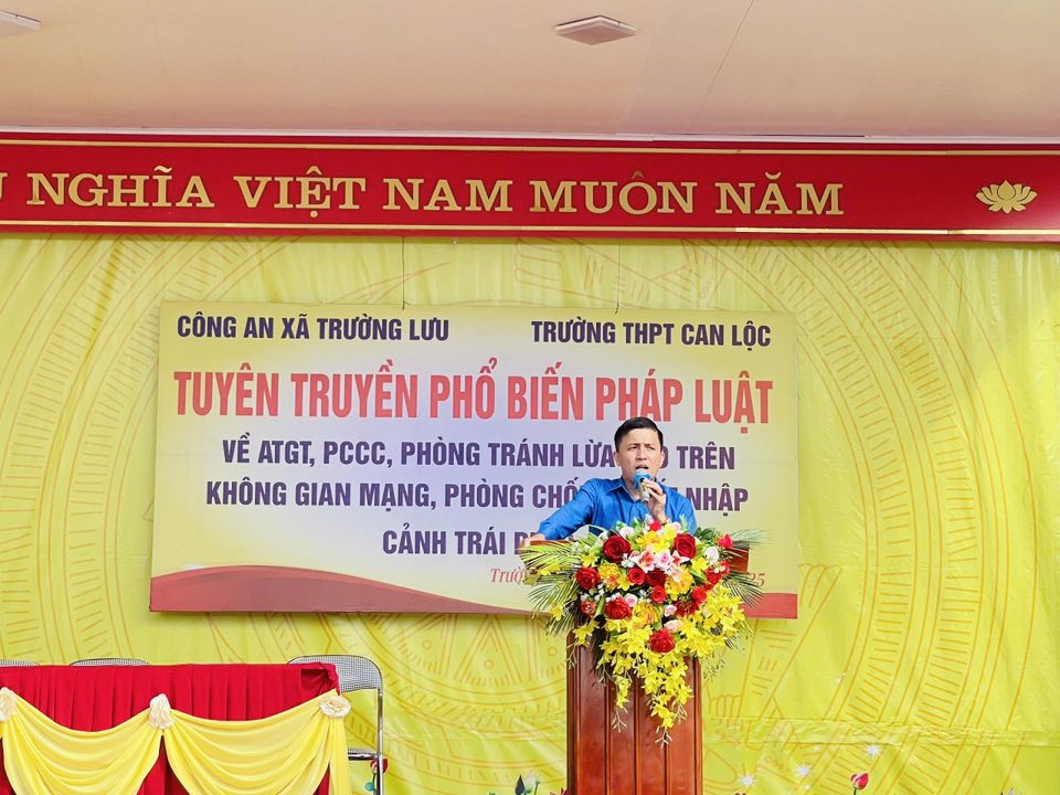 Nhằm nâng cao ý thức chấp hành pháp luật và xây dựng môi trường học đường an toàn, lành mạnh, sáng ngày 04/9/2025, Công an xã Trường Lưu đã phối hợp với Trường THPT Can Lộc tổ chức buổi tuyên truyền, phổ biến giáo dục pháp luật cho 85 cán bộ, giáo viên và 1120 học sinh nhà trường trước thềm năm học mới.