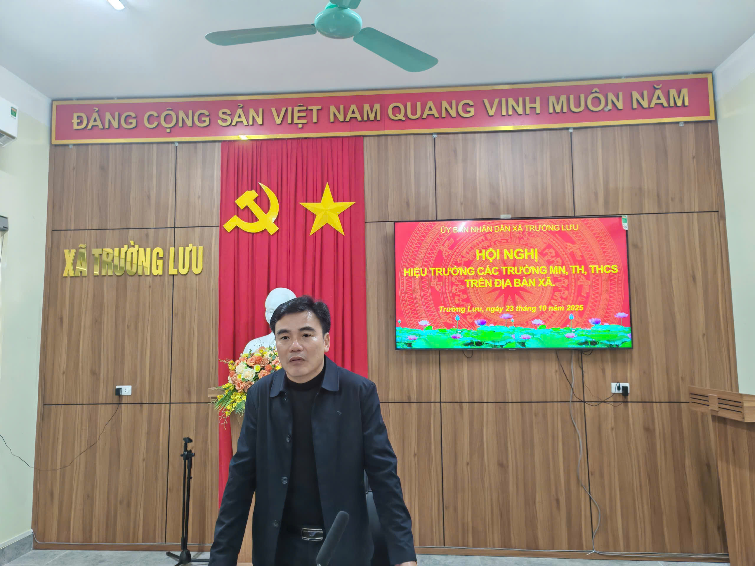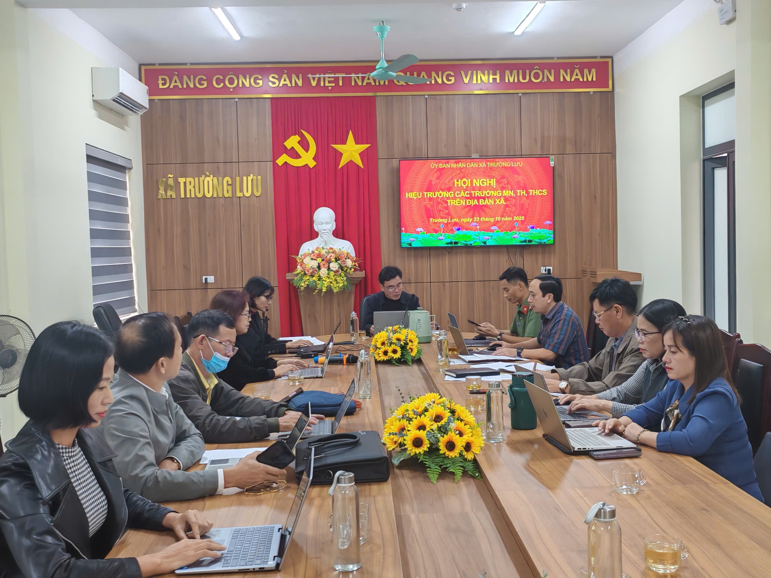Chiều ngày 23/10/2025, UBND xã Trường Lưu tổ chức hội nghị quán triệt thực hiện công tác một số nội dung trọng tâm năm học 2025 – 2026, cụ thể: Công tác phổ cập giáo dục - Xóa mù chữ (PCGD-XMC); Công tác tổ chức bồi dưỡng HS tham gia kỳ thi học sinh giỏi tỉnh lớp 9 năm học 2025-2026; thực hiện vận động tài trợ theo Thông tư 16/2018/TT-BGDĐT, các khoản thu dịch vụ, hỗ trợ giáo dục theo Nghị quyết 107/2023/NQ-HĐND tỉnh Hà Tĩnh, Công văn 5027/UBND-VX ngày 31/7/2018 của UBND tỉnh