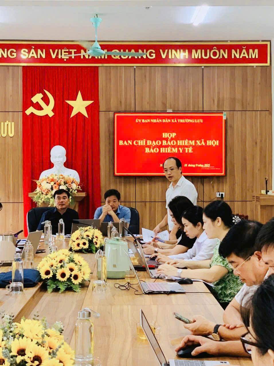 Thực hiện kế hoạch công tác quý IV năm 2025, chiều ngày 18/9/2025, tại Hội trường tầng 3 UBND xã, Ban Chỉ đạo Bảo hiểm xã hội, Bảo hiểm y tế xã Trường Lưu đã tổ chức cuộc họp triển khai nhiệm vụ.
