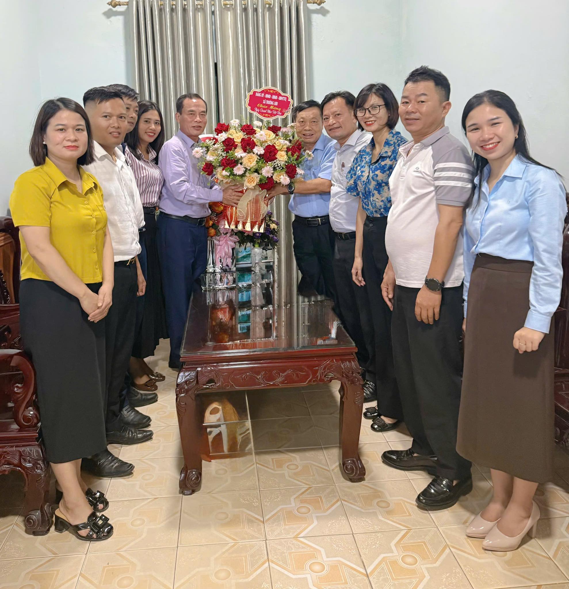 Trước đó cùng ngày, lãnh đạo xã đã đến tặng hoa chúc mừng một số doanh nhân tiêu biểu trên địa bàn.