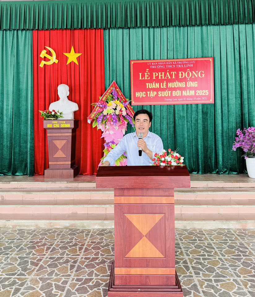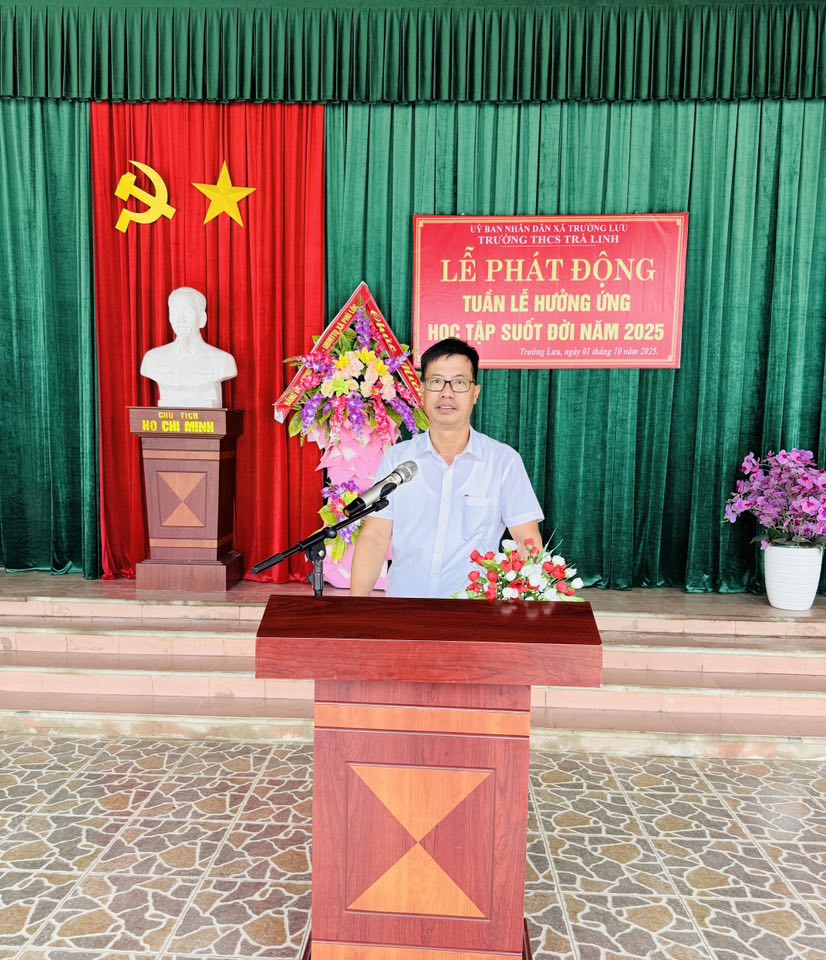 Sáng ngày 01/10/2025, tại Trường THCS Trà Linh, UBND xã Trường Lưu đã tổ chức Lễ khai mạc Tuần lễ hưởng ứng học tập suốt đời năm 2025. Đây là hoạt động điểm của xã, nhằm đẩy mạnh phong trào thi đua học tập thường xuyên, học tập suốt đời trong cán bộ, đảng viên, giáo viên, học sinh và các tầng lớp nhân dân.