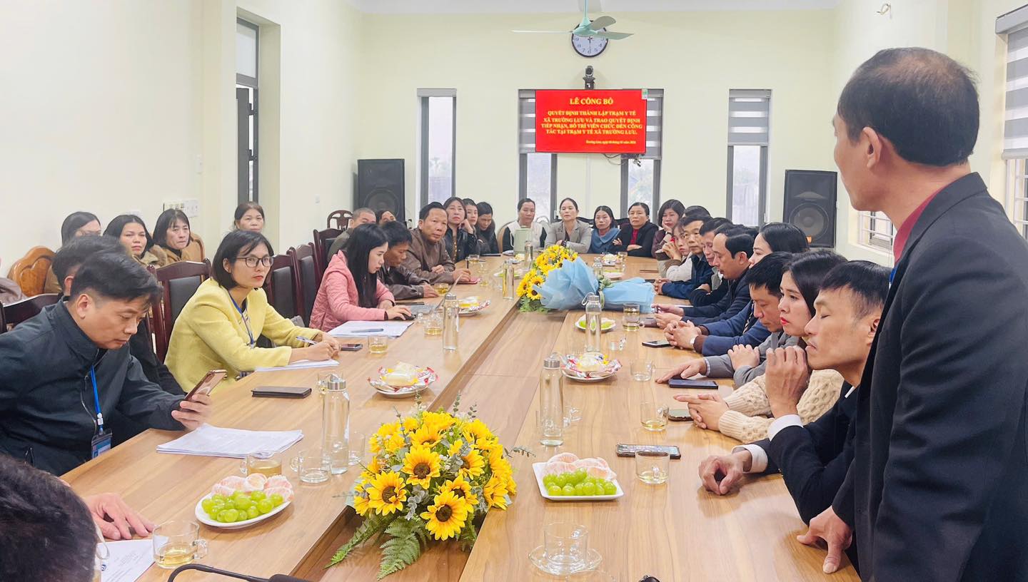 Tại buổi lễ, UBND xã đã công bố các quyết định liên quan đến việc thành lập Trạm Y tế xã Trường Lưu trên cơ sở sắp xếp, hợp nhất 03 Trạm Y tế Kim Song Trường, Thường Nga và Phú Lộc; đồng thời trao Quyết định tiếp nhận, bố trí đội ngũ viên chức y tế về công tác tại Trạm Y tế xã theo đúng quy định.