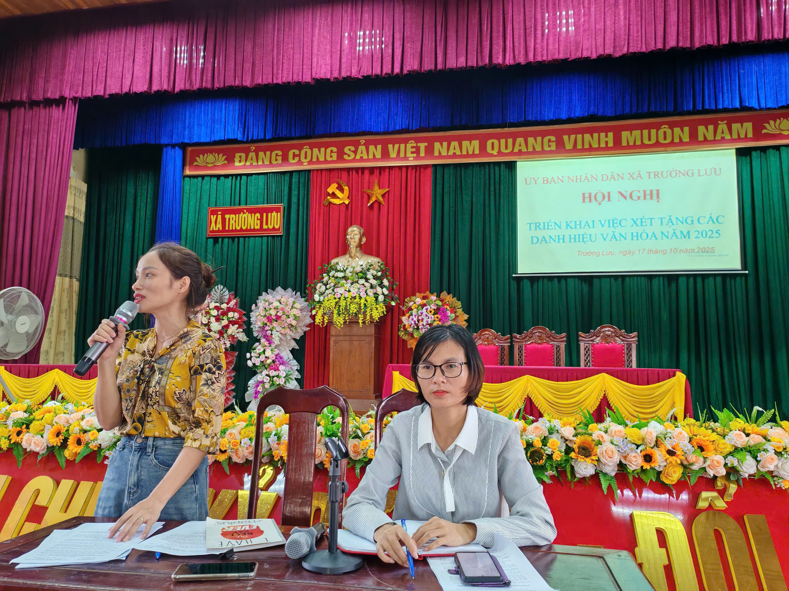 Chiều ngày 17/10/2025, UBND xã Trường Lưu tổ chức hội nghị triển khai việc xét tặng các danh hiệu văn hóa năm 2025.