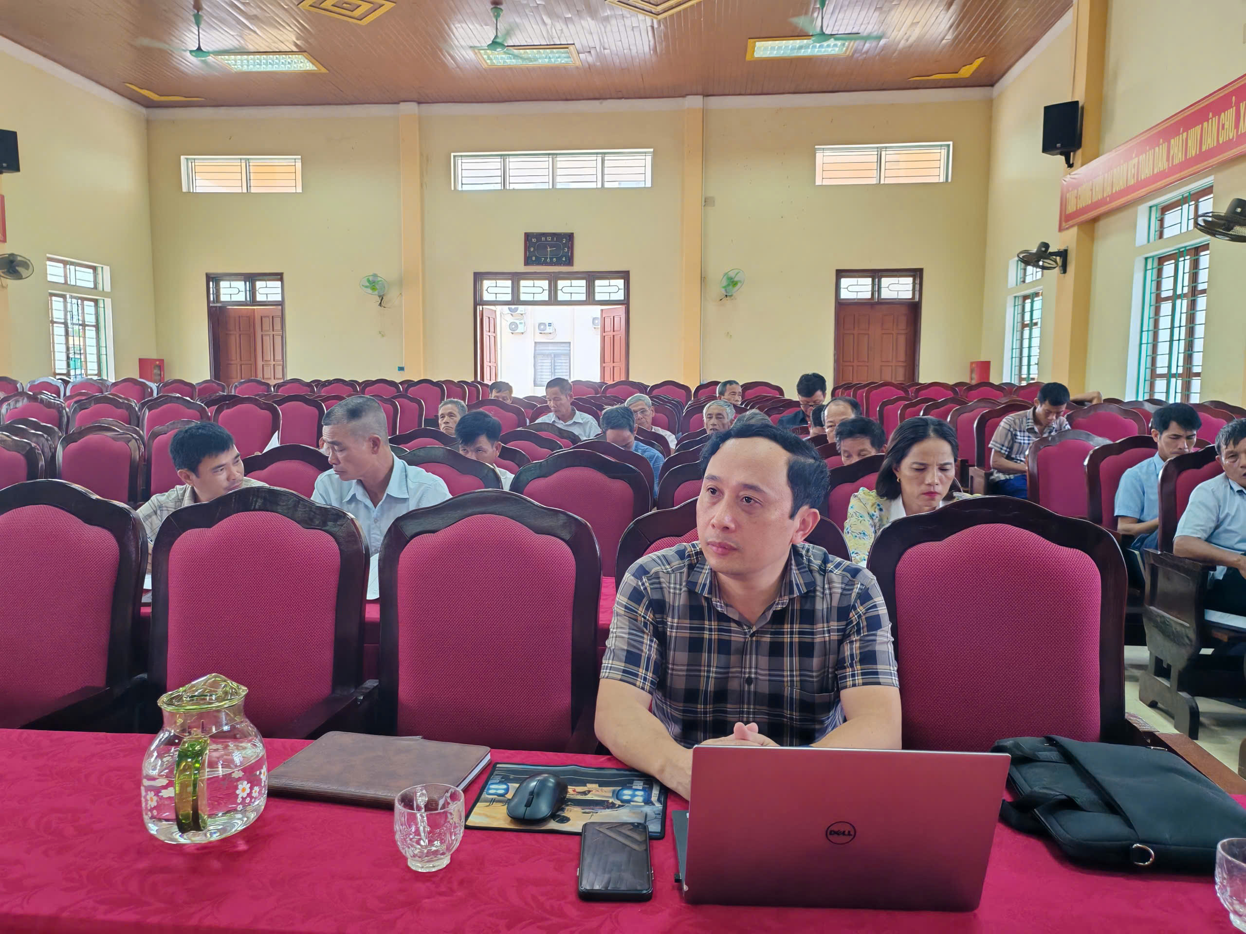 Đồng chí Phan Thị Huyền Trang – Trưởng phòng Văn hóa – Xã hội, chủ trì hội nghị. Tham dự hội nghị có các đồng chí lãnh đạo, chuyên viên phòng Văn hóa xã hội; đại diện các thành viên Ban chỉ đạo phong trào “Toàn dân đoàn kết xây dựng đời sống văn hóa” của xã; Trưởng ban công tác Mặt trận, Bí thư Chi bộ, Trưởng các thôn trên địa bàn.